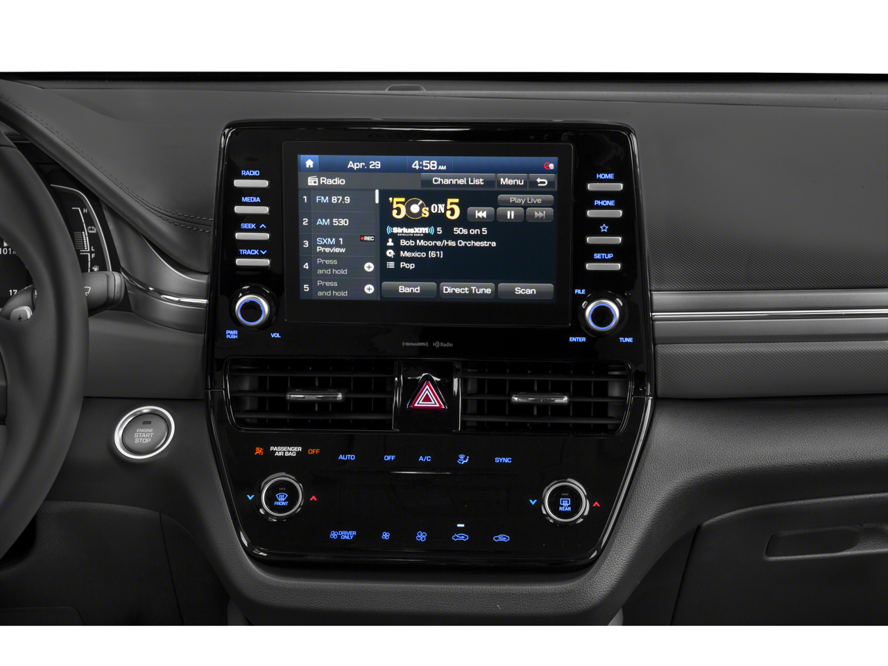 - Radio: AM/FM/HD Display Audio -inc: 8" high resolution touchscreen, USB input, wireless Apple CarPlay and Android Auto, speed-sensitive automatic volume control, integrated Bluetooth w/phonebook transfer and voice recognition, Blue Link connected car services and SiriusXM satellite radio, SiriusXM is not available in AK and HI